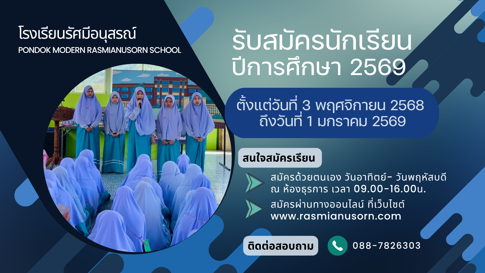 โรงเรียนรัศมีอนุสรณ์ เปิดรับสมัครนักเรียน ปีการศึกษา 2569
