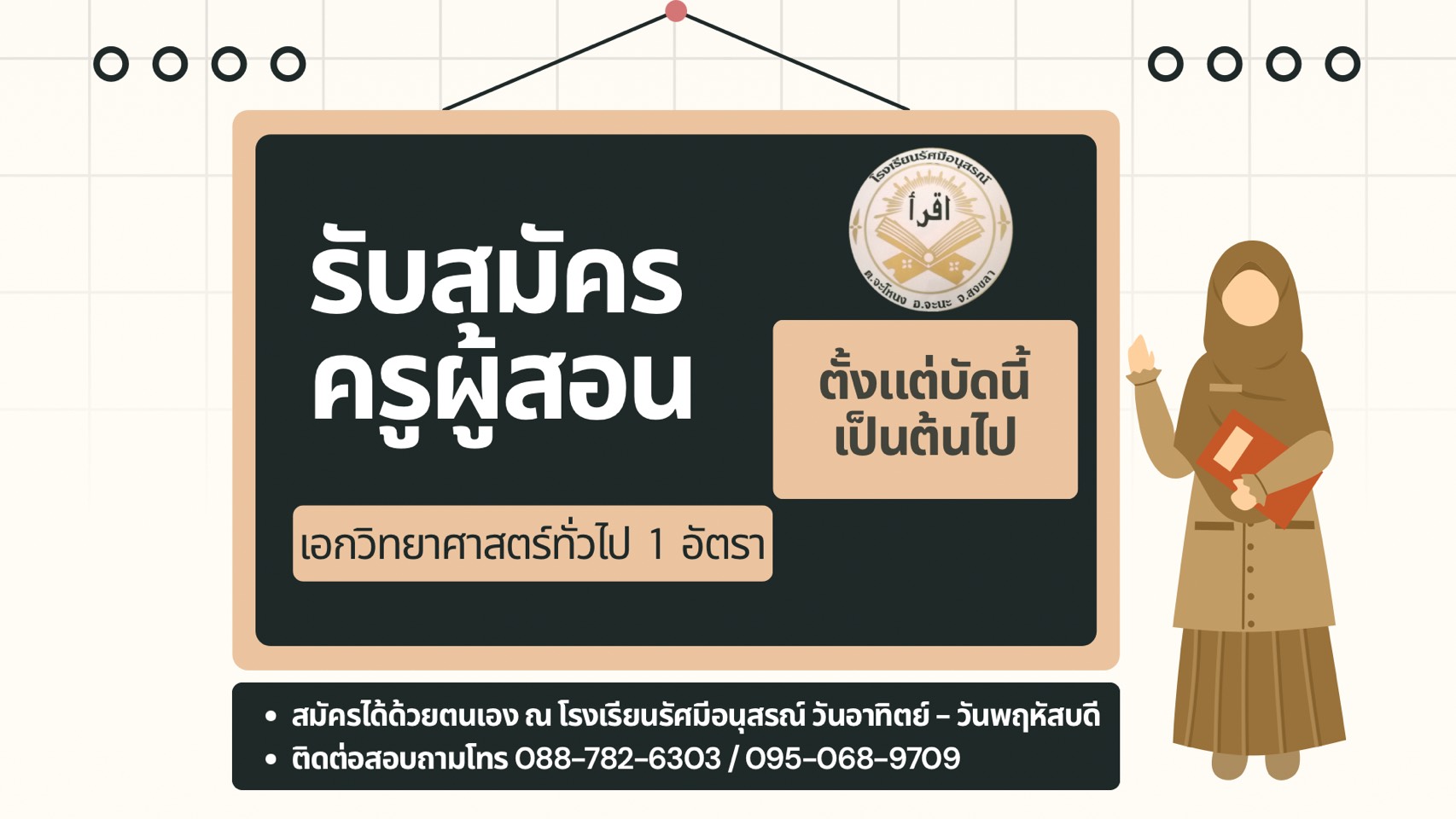 รับสมัครครูผู้สอนวิชาวิทยาศาสตร์ 1 อัตรา Published: 04 February 2026 Written by Super User Hits: 7 Category: ข่าวประชาสัมพันธ์